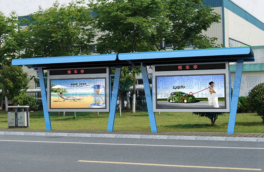 不锈钢板或镀锌板是候车亭最主要的材料,也有采用铝型材的,但比较少见。其他主要材料还有PC耐力板、钢化玻璃,用在灯箱两面,就是广告画面外面透明的那层板;铝塑板,用在顶棚的下面,就是抬头看到的那部分;镀锌板,一般用在顶棚上面和灯箱的主框。