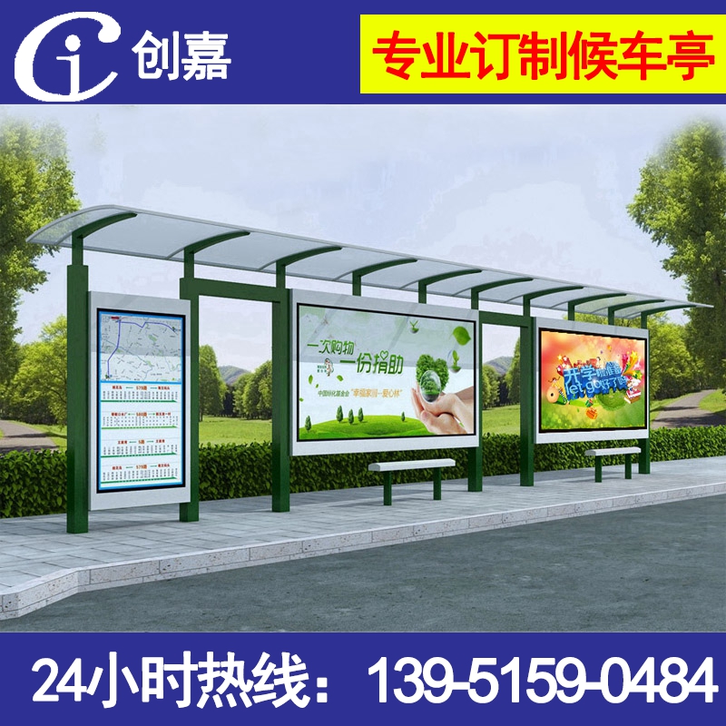 公交候车亭一般是与公交站牌相配套的,为方便公交乘客候车时遮阳、防雨等,在车站、道路两旁或绿化带的港湾式公交停靠站上建设的交通设施。由于城市公交的日益发达,公交候车亭已发展成为城市一个不可或缺的重要组成部分,设计精美的公交候车亭也成为了城市一道美丽的风景。 一般公交候车亭主要由支柱、顶棚和隔板组成,也有用广告灯箱更换隔板的。